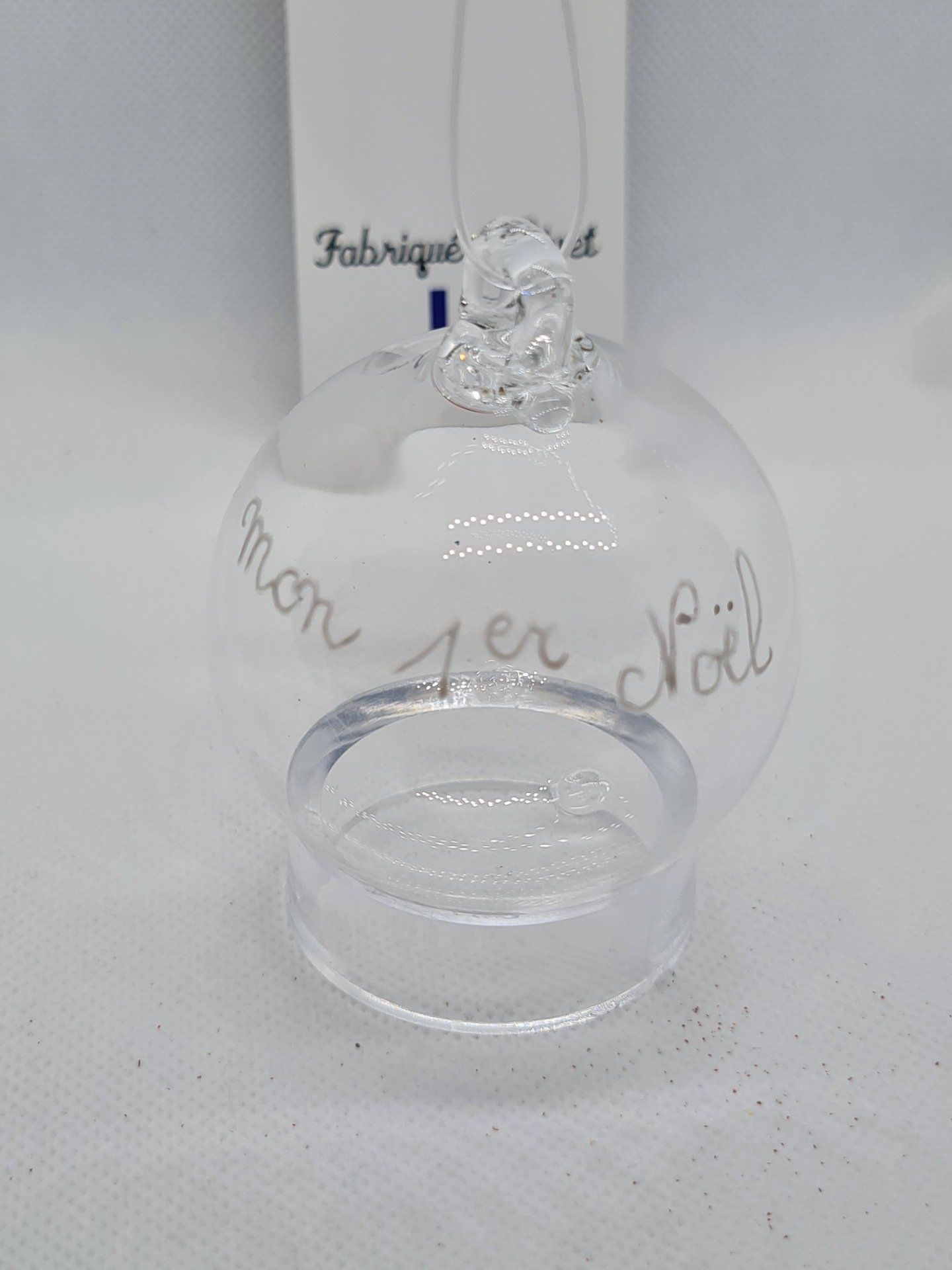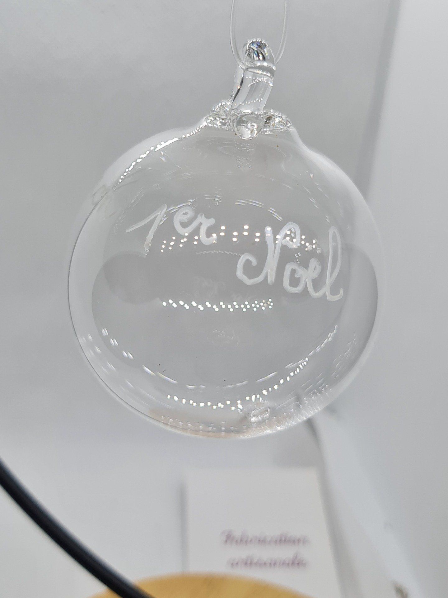 Personnalisez votre boule de Noël avec le texte de votre choix, par exemple :