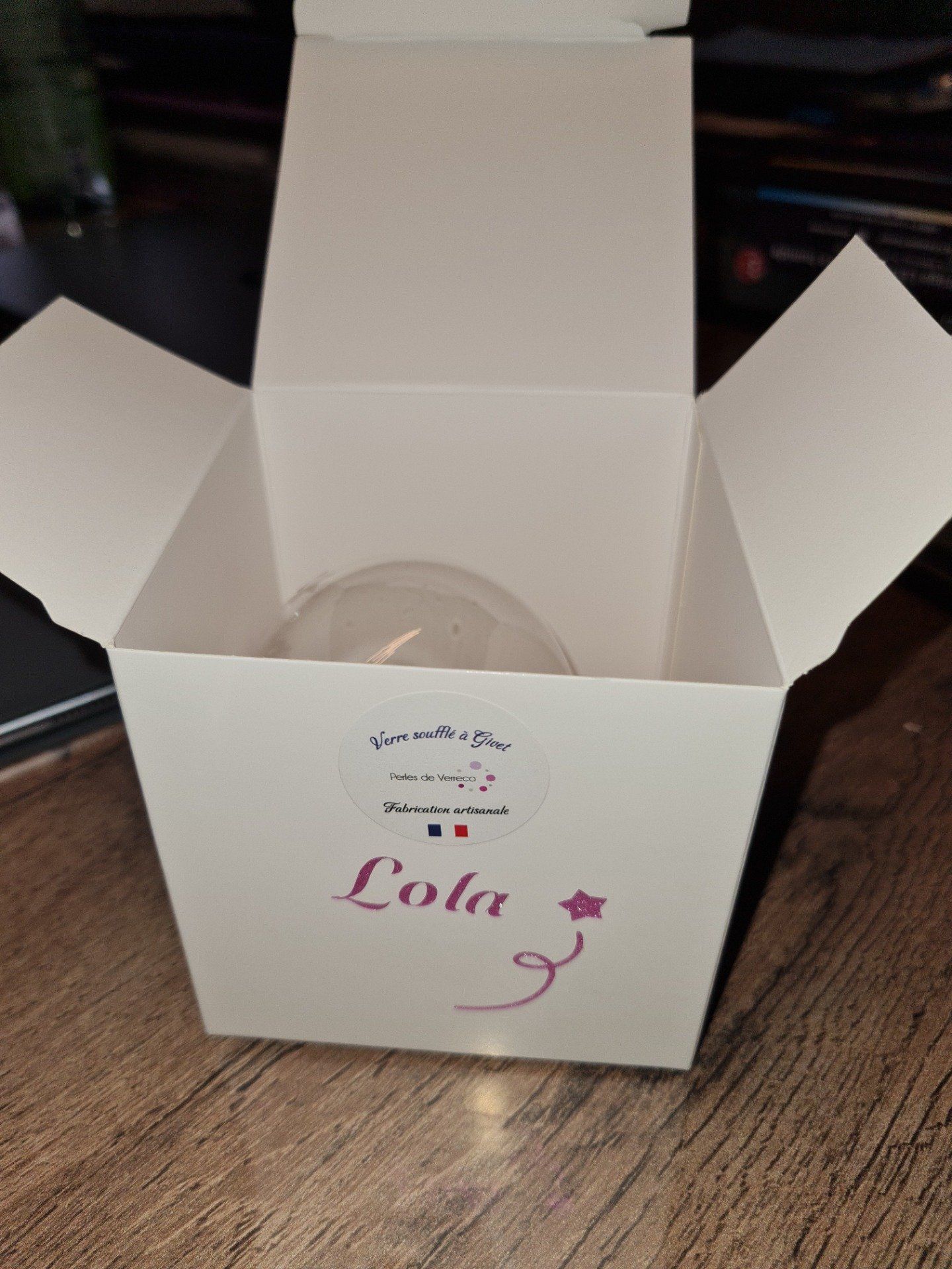 Boule transparente en verre soufflé livrée dans sa boite cadeau personnalisée