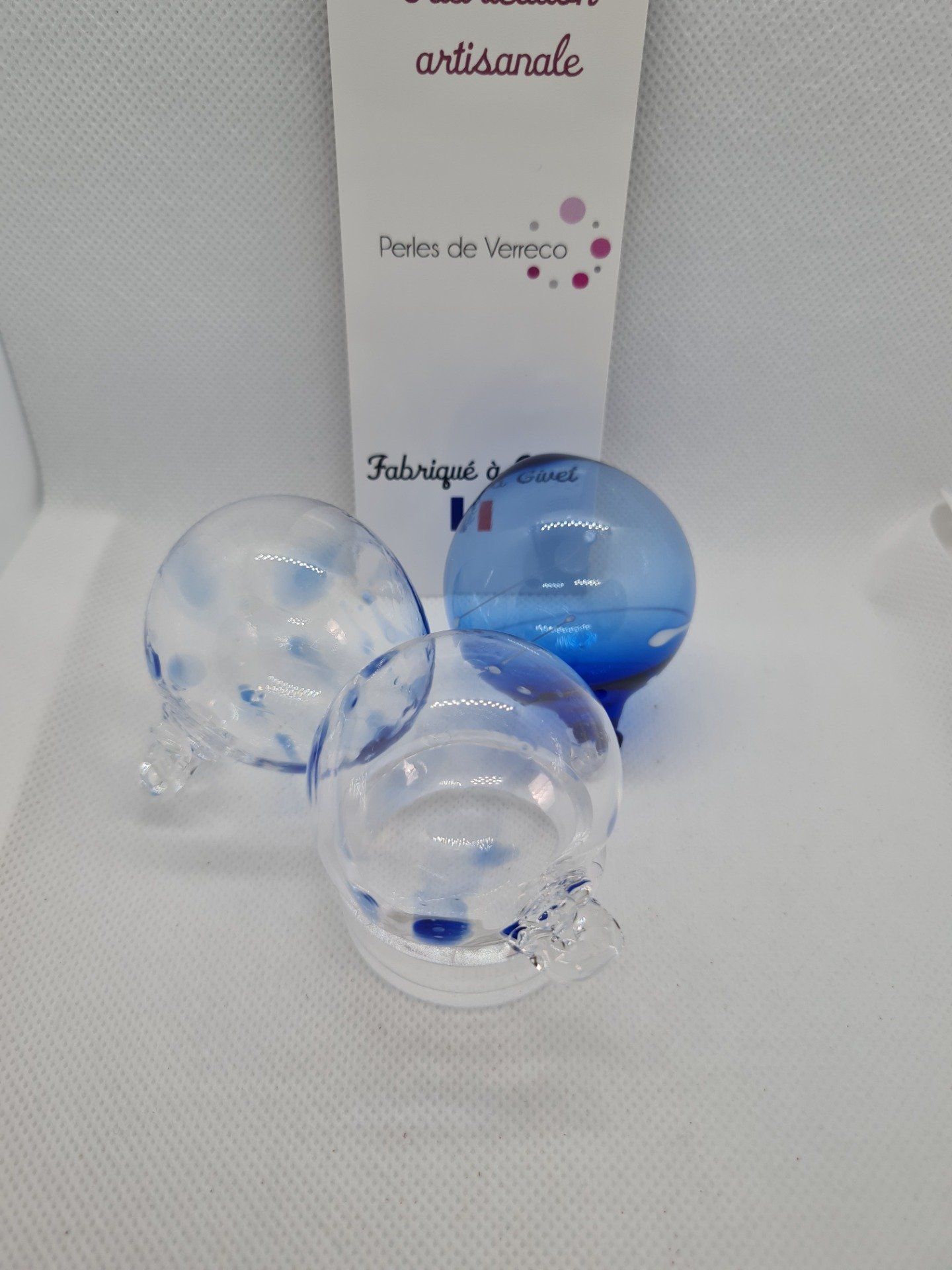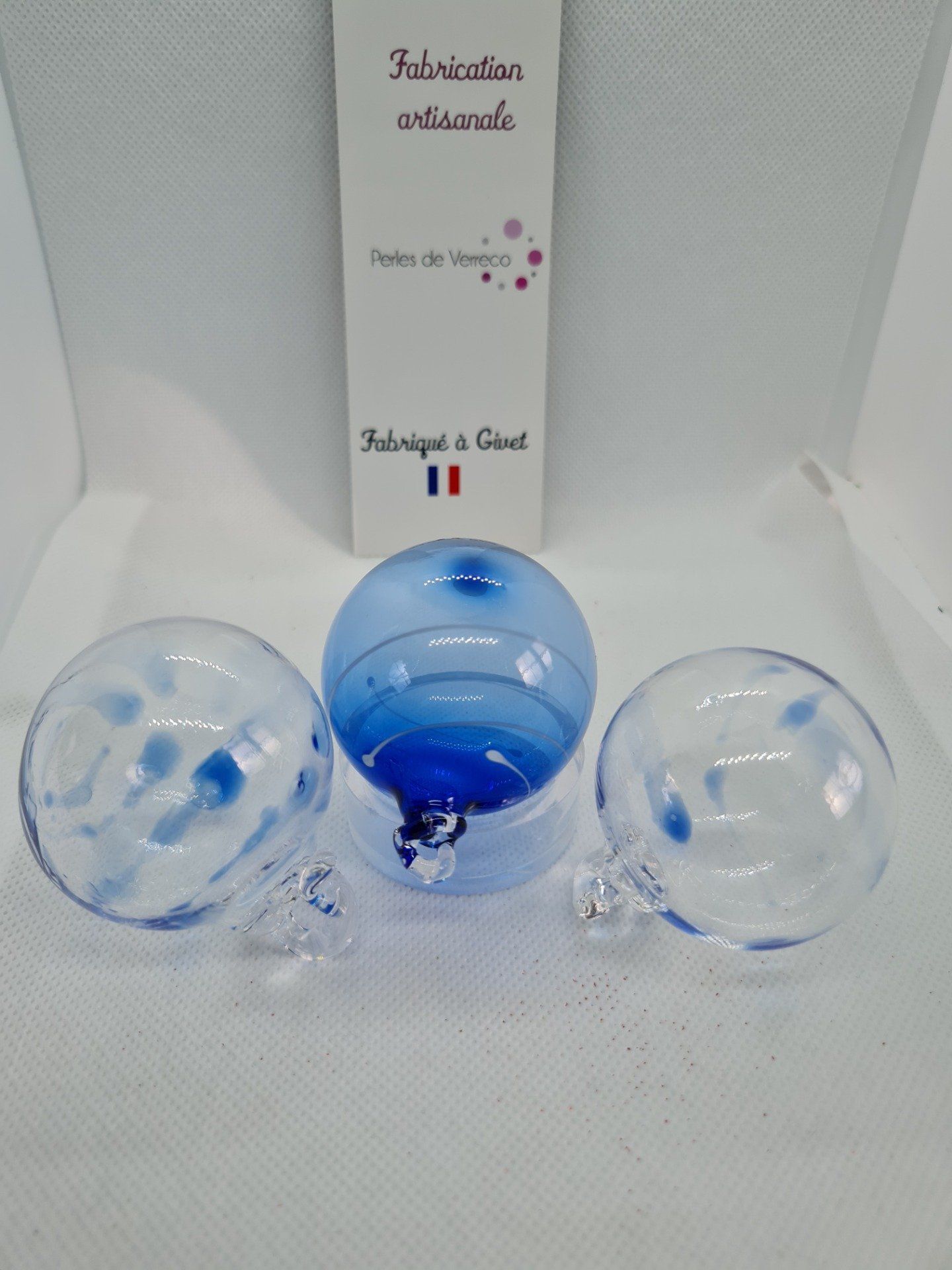 Les boules sont en verre fabriquées artisanalement et mesurent environ 5,5 à 6 cm, il s'agit d'un travail manuel ce qui explique parfois certaines variations